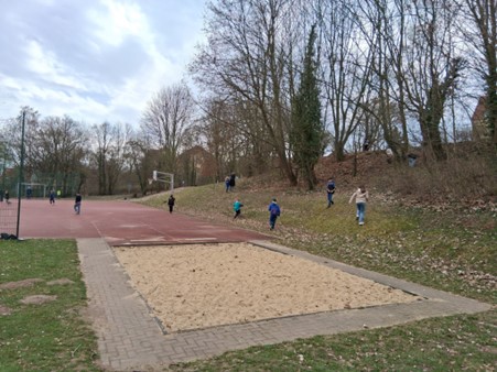 Gestartet wurde der Tag mit einem gemeinsamen Frühstück mit leckeren Brötchen, Milch und frischem Obst, ein erstes Kennenlernen und „Eisbrecher“ für die Kinder. Danach wurden die Schüler/innen in gemischte Gruppen aufgeteilt und sie erhielten einen Stations- und Zeitplan. Bei erlebnispädagogischen Spielen, Kennenlernübungen und gemeinsamen Basteleien hatten alle Kinder viel Spaß. Die einzelnen Stationen waren im gesamten Schulgebäude verteilt und die Kinder der 5b hatten die Aufgabe, den Jüngeren zu helfen. Ihre Aufgabe, die Grundschüler/innen willkommen zu heißen, sie zu begleiten und in der Gruppe aufzunehmen, haben alle sehr ernst genommen. Die “Großen” zeigten sich dabei sehr offen. Zum Abschluss stand noch eine kurze Wanderung zum nahegelegenen Bolzplatz auf dem Plan. Die Kinder der 5. Klasse hatten dort für die „Kleinen“ eine Ostereiersuche vorbereitet.